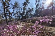 헤드라인충청 최주일 기자 | 청양군 청양읍의 중심에 위치한 우산 산림조경숲 산책로가 분홍 진달래와 희귀한 백진달래의 환상적인 조화로 등산객들의 마음을 사로잡고 있다. 우산 일대는 소나무 군락이 잘 형성돼 사계절 푸른 경관을 유지하는 곳으로, 소나무 아래에서 자라는 진달래는 생육환경과 형태적 특징이 잘 맞아 자연 속에서 조화를 이루는 대표적인 수목으로 꼽힌다. 군은 지난 2022년부터 특색 있는 경관 조림 사업의 일환으로 우산 내 소나무 숲 하층에 진달래 1만 2,800본과 백진달래 5,500본을 식재했다. 현재 산책로를 따라 만개한 진달래는 소나무의 짙은 녹음과 대비를 이루며 한 폭의 수채화 같은 풍경을 연출하고 있다. 특히 일반적인 분홍 진달래 사이사이에 피어난 순백의 백진달래는 등산객들에게 색다른 볼거리를 선사하고 있으며, 산책로 주변에 함께 식재된 철쭉과 맥문동이 4월 말부터 차례로 꽃망울을 터뜨려 봄 내내 끊이지 않는 꽃길을 선사할 예정이다. 우산의 진달래 꽃길은 청양읍 감리교회 뒤편 약수터를 지나 백천리 방향 산책로를 따라가면 만날 수 있다. 읍내 권역에 위치해 접근성이 뛰어