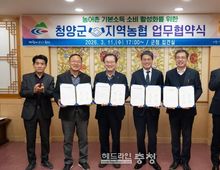 헤드라인충청 최주일 기자 | 청양군이 ‘농어촌 기본소득 시범사업’의 성공적인 안착과 지역 경제 선순환 구조를 확립하기 위해 관내 농협들과 긴밀한 협력 체계를 가동한다. 군은 지난 11일 군청에서 김돈곤 군수를 비롯해 김성훈 청양농협 조합장, 황인국 정산농협 조합장, 김종욱 화성농협 조합장, 최진엽 농협 청양군지부장 등이 참석한 가운데 ‘농어촌 기본소득 소비 활성화를 위한 업무협약(MOU)’을 체결했다고 밝혔다. 이번 협약은 농어촌 기본소득 시범사업이 단순한 현금 지원을 넘어, 지역 내 소비를 촉진하고 소상공인과 농협이 상생하는 경제 생태계를 조성하기 위해 마련됐다. 주요 협약 내용은 기본소득을 통해 발생한 매출액의 일부를 지역사회에 환원하는 사회적 기부활동과 지역 상생 협력 방안으로 ▲로컬푸드 및 신선식품 판매 확대 ▲주민 수요 기반 상품 발굴 ▲농협 유통망을 활용한 배달 서비스 제공 등이다. 군과 3개 지역농협은 앞으로 농어촌 기본소득 시범사업 관련 정책 정보를 공유하고 군민 이용 편의 증진을 위한 운영 전반에 협력할 계획이다. 아울러 현장의 의견을 지속적으로 공유해 제도의 실효성과
