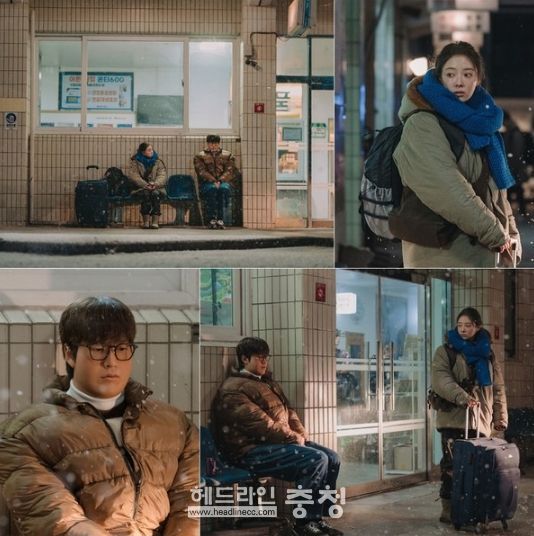 이 가운데 '모텔 캘리포니아' 측이 극 중 12년 전 1월 1일, 강희가 스무 살의 첫날 밤 가출을 감행하는 스틸을 공개해 이목을 집중시킨다. 공개된 스틸 속 강희와 연수는 동도 트지 않은 고요한 새벽녘에 하나읍의 시외 버스정류장에 함께 있는 모습.