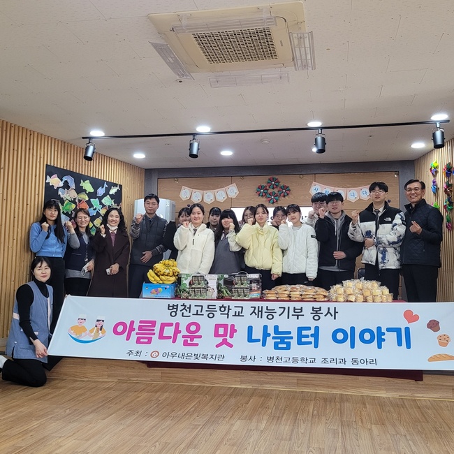 한편 병천고등학교는 조리과와 미용과에서 어르신들을 위한 봉사활동을 진행하며 특히 조리과는 매월 셋째 목요일에 빵, 샌드위치 등을 만들어 아우내은빛복지관을 이용하는 어르신들에게 전달하는 나눔 활동을 이어오고 있다.