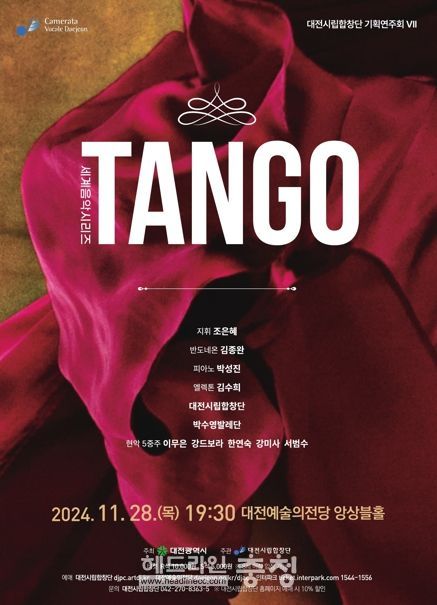 헤드라인충청 최병옥 기자 | 대전시립합창단의 기획연주회 세계음악시리즈‘탱고’가 28일 목요일 오후 7시 30분 대전예술의전당 앙상블홀 무대에 오른다.