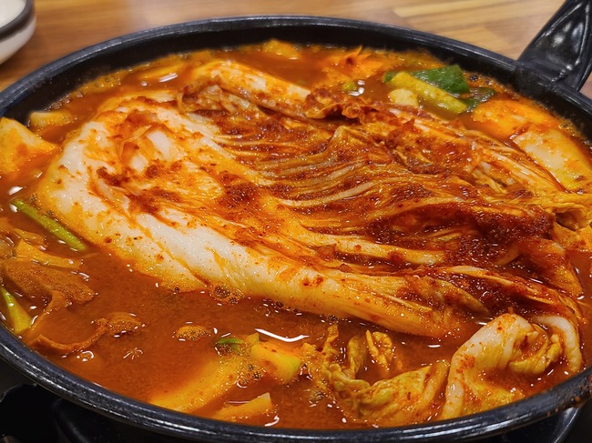 김치가 곱창을 가득히 덮여 있는 선산곱창은 느끼하지 않고 사골 육수가 들어가 그 맛이 구수한 맛을 낸다.  육수를 끓일수록 걸죽하고 고소해서 더욱 깊은 맛을 느낄수 있다.