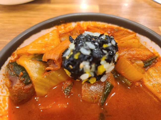 푹 끓여진 곱창전골 육수에 밥을 비벼 먹는 대접밥도 좋지만 볶음밥도 고소하다. 취향대로 드셔보시길 권한다. 오늘은 사장님의 권유로 날치알이 가득 들어간 주먹밥을 먹기로~
