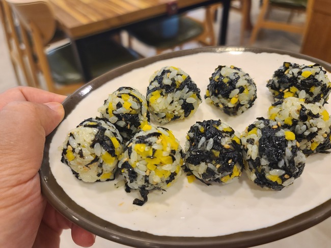 손님이 직접 주먹밥을 만들어야 하니 은근 재미도 있고 입안에 날치알도 씹히고 고소해서