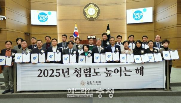 헤드라인충청 최주일 기자 | 충남 천안시의회은 2025년 종합청렴도 향상과 시민 신뢰 구축을 위해 2월 7일 제276회 임시회 산회 후 본회의장에서‘천안시의회 반부패·청렴 실천 다짐대회’를 개최했다고 밝혔다.