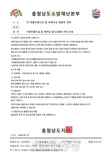 홍성소방서는 소방기관에서는 어떠한 경우에도 개인 명의 계좌로 물품 대금을 요구하지 않으며, 전화로 선입금을 요청하는 일 또한 없다고 강조했다. 아울러 모든 물품 구매는 공문서와 정식 계약 절차에 따라 진행된다고 밝혔다.