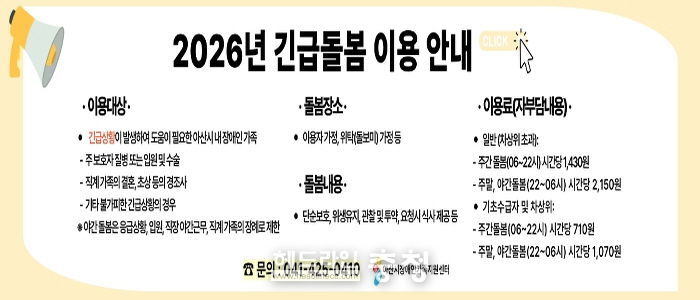 헤드라인충청 최주일 기자 | 아산시는 장애인 가족의 돌봄 부담을 경감하고 삶의 질을 향상하기 위해 ‘중증장애인 긴급돌봄서비스’를 추진한다.