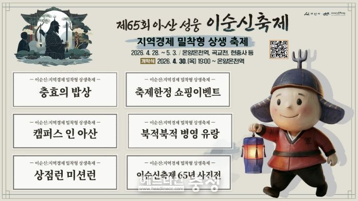 한편, 제65회 아산 성웅 이순신축제는 4월 28일부터 5월 3일까지 6일간 온양온천역, 현충사, 곡교천 일원에서 열린다. 개막식은 4월 30일 개최된다.