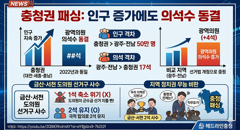 #충청권홀대 #광역의원선거구 #선거법개정 #금산도의원 #서천도의원 #헤드라인충청 #지방선거 #충청정치력
