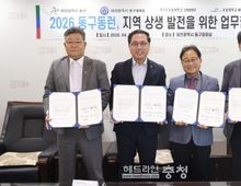 헤드라인충청 최병옥 기자 | 대전 동구는 23일 구청장 접견실에서 우송대학교‧동구 체육회와 ‘동구동런(Run)’ 운영 활성화를 위한 업무협약을 체결했다고 밝혔다. 이번 협약은 지역 러닝문화 활성화를 위한 동구 대표 체육 프로그램인 ‘동구동런(Run)’의 체계적인 운영과 참여 확대를 지원하고, 각 기관이 협력해 러닝 기반 건강증진 프로그램을 발굴하기 위해 마련됐다. 협약에 따라 구는 행정적·재정적 지원을 비롯해 러닝코스 개발과 운동환경 조성, 주민 참여 확대를 위한 홍보 및 정책 연계를 추진하며, 우송대학교는 바이오헬스 분야와 연계해 참여자의 신체 변화 측정과 운동 효과 분석, 프로그램 고도화와 학생 참여, 자원봉사 인력 지원에 나선다. 또한 동구 체육회는 프로그램 기획과 운영 전반을 맡아 전문지도자 배치, 참여자 모집, 일정 운영, 현장 안전관리 등을 담당한다. 박희조 동구청장은 “최근 러닝에 대한 관심이 높아지는 가운데, 이번 협약을 통해 과학적 데이터 기반의 체계적인 프로그램 운영이 가능해질 것으로 기대한다”며 “앞으로도 주민 누구나 일상 속에서 쉽게 참여할 수 있는 생활체육 환경을 지속적으로